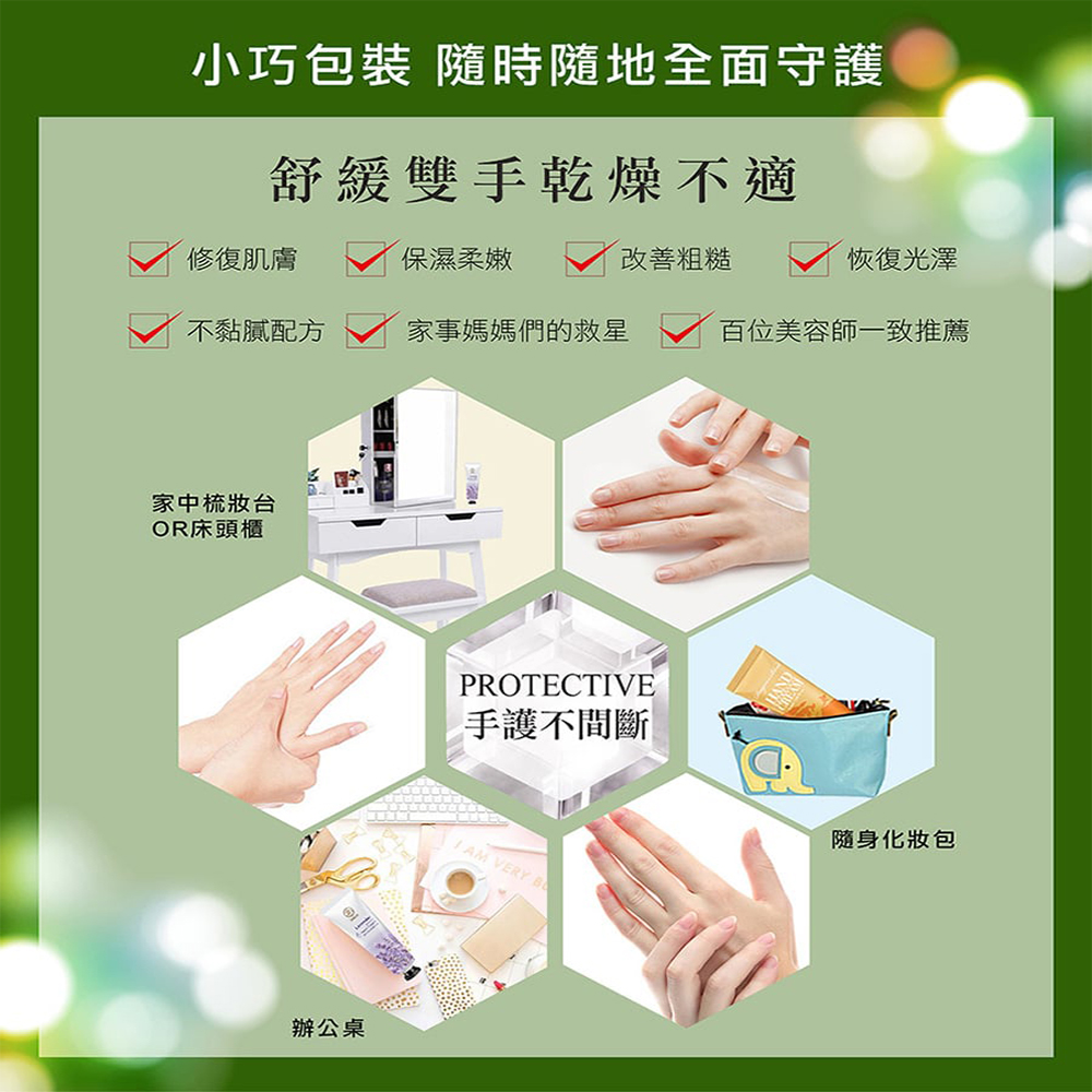 ★含茶樹精油、乳木果油及燕麥滋養★具有防護保濕成分 可修護手部乾燥現象★澳洲茶樹精油萃取 清涼中微帶木質調的清新氛圍★乳木果油 為肌膚保濕及保有彈性之必要成分★大麥萃取 防止肌膚老化★米糠油豐含維生素E及殼維素 預防皮膚乾裂