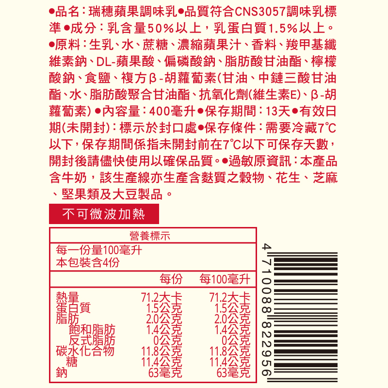 瑞穗蘋果調味乳400ml※實際到貨效期約4天以上
