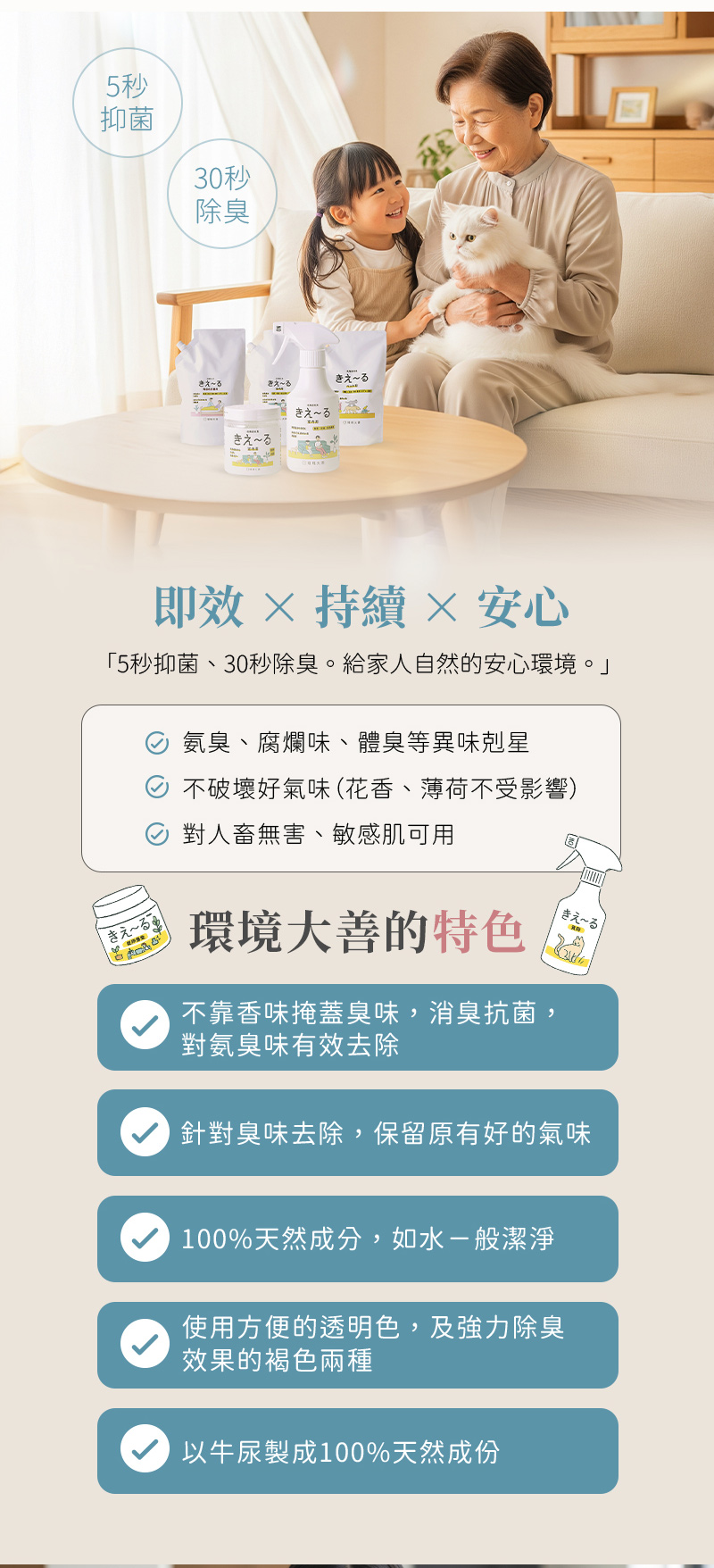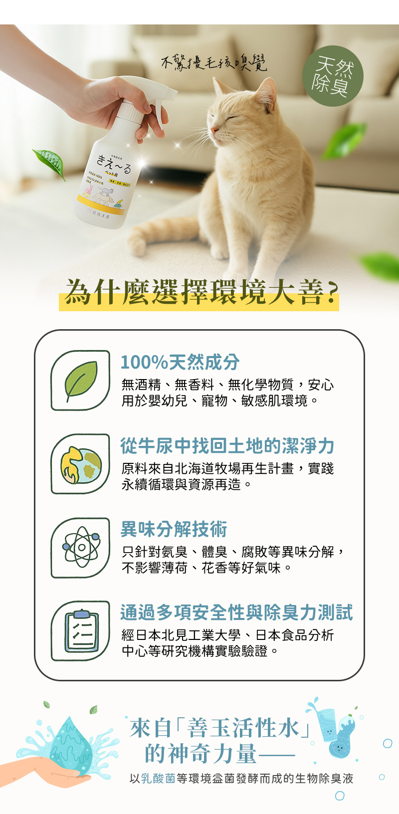 100%天然成分,無色透明無添加,如水ㄧ般潔淨的除臭劑