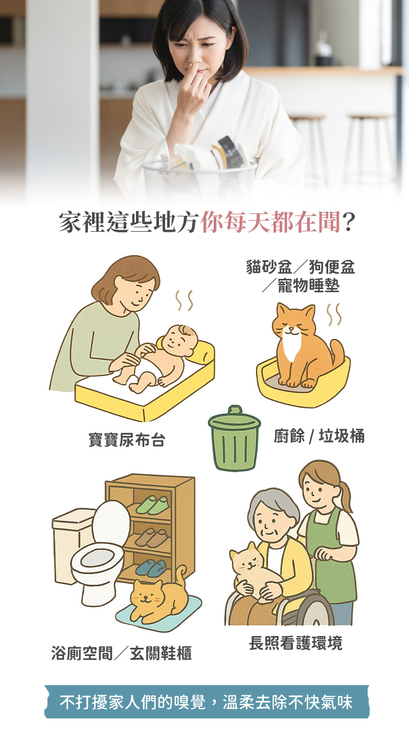 放置空間中,緩釋除臭3-4個月,長效分解難聞異味