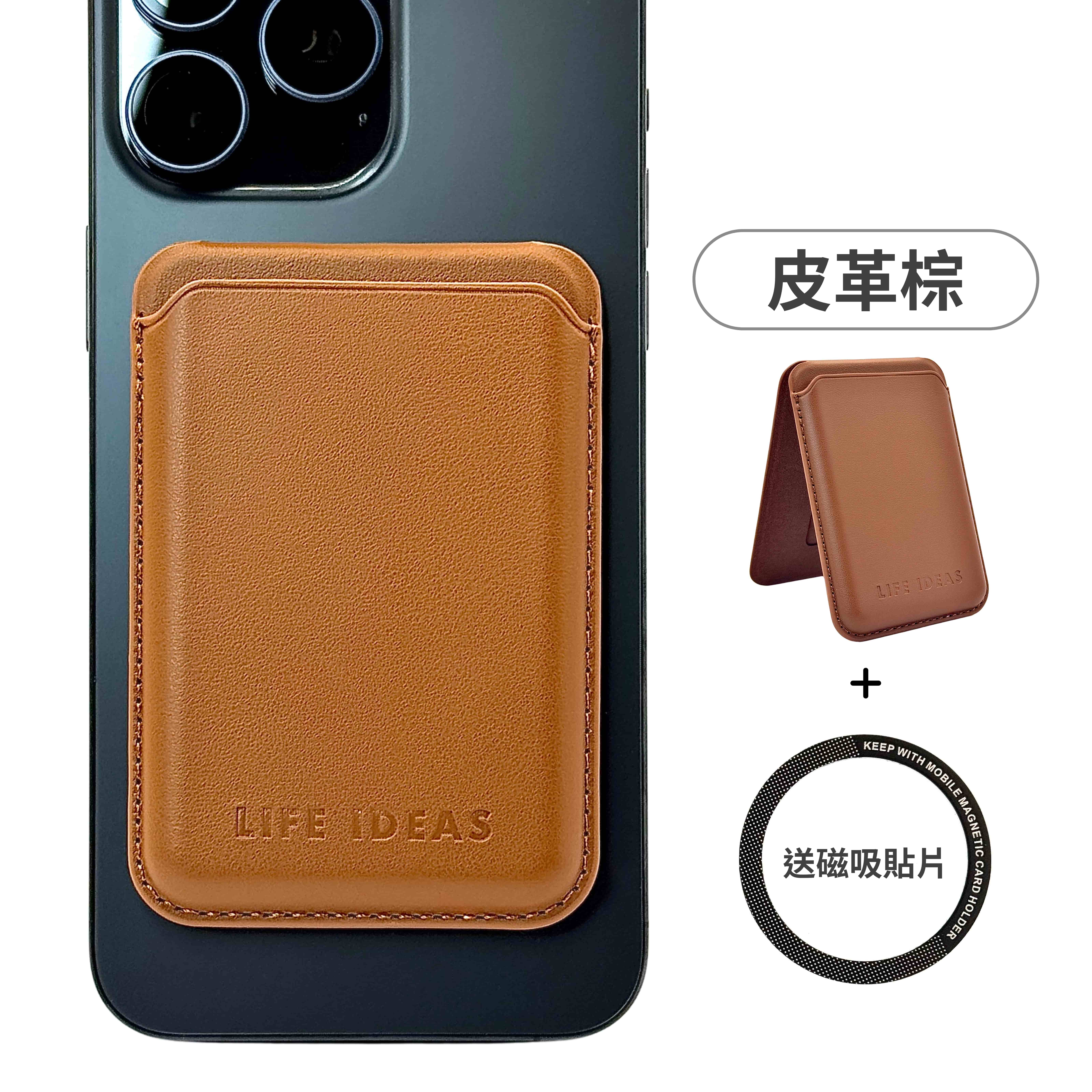 【生活好電子】手機卡套x支架 零脫落 17ProMax 也不脫落!MagSafe 磁吸式支架 皮革質感 卡套 卡包 卡夾 適用iPhone/Android-皮革棕