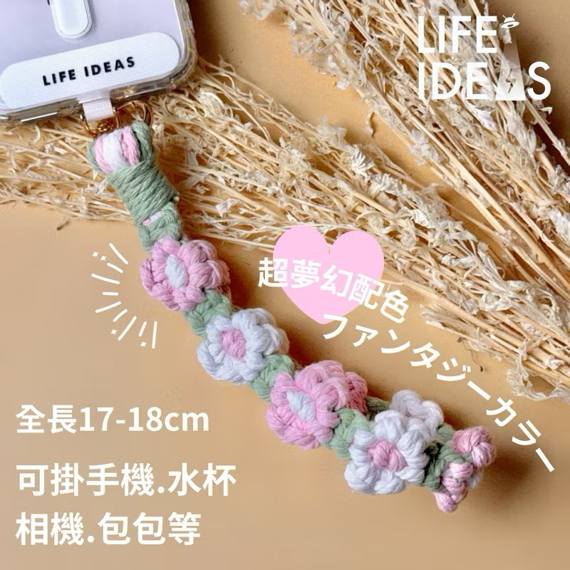 花花短掛繩(共7色)編織:手工編織,使花花掛繩更有立體感。顏色:三色搭配,層次更美麗。金屬:圓彈簧扣,質感再升級。長度:長度17-18cm。適用:手環掛繩。