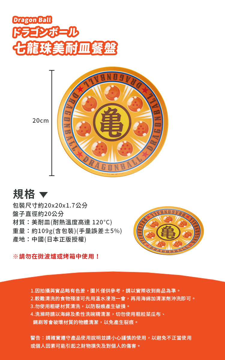【百科良品】七龍珠 龜 美食盤子 美耐皿餐盤20CM (日本境內版)