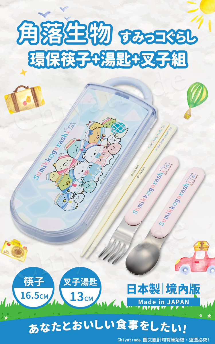 品牌:日本SKATER原廠公司貨-平行輸入外盒約20.6x8.2x1.7公分筷子約16.5公分湯匙約13公分叉子約13公分材料:ABS樹脂、AS樹脂、矽膠重量:約151g(含包裝)(手量誤差±5%)產地:日本 Made in Japan耐溫:100度