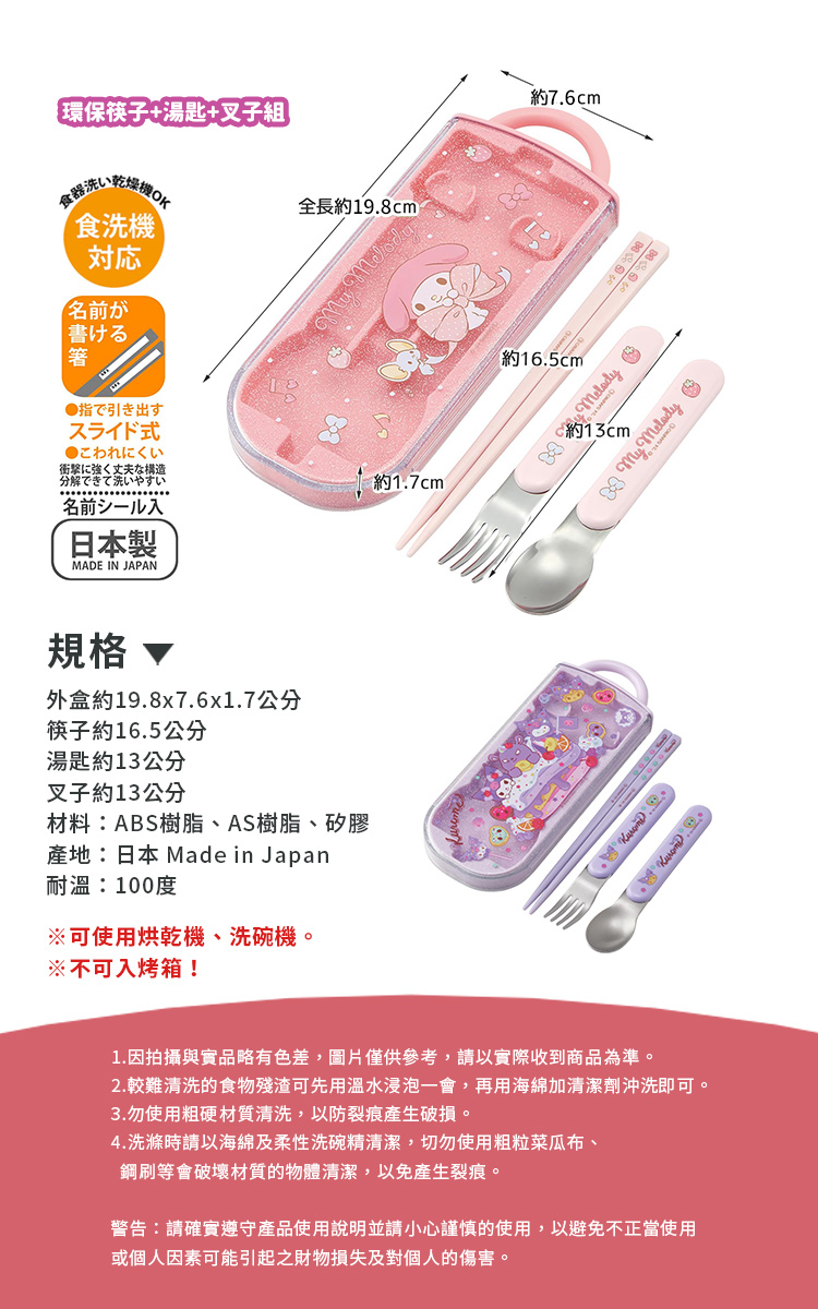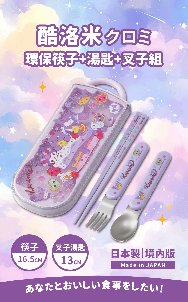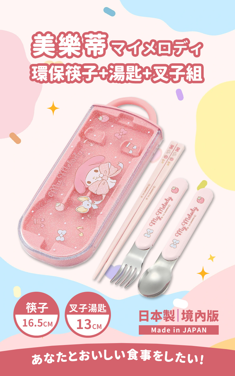 【百科良品】日本製 三麗鷗 美樂蒂 酷洛米 環保筷子+湯匙+叉子三件餐具組(日本境內版)