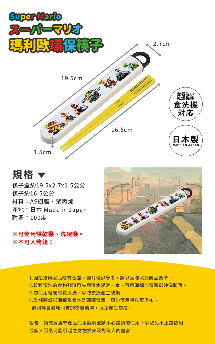 【百科良品】日本製 超級瑪利歐 賽車世界 環保筷子 16.5CM(日本境內版)