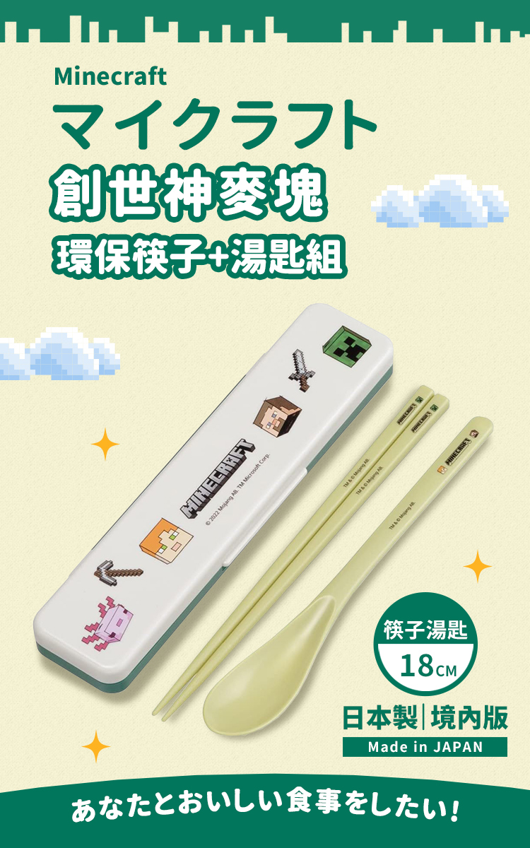 【百科良品】日本製 我的世界 創世神 Minecraft 麥塊 環保筷子+湯匙組 18CM(日本境內版)