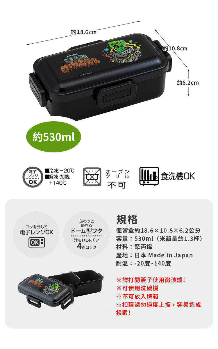 日本 Made in Japan (境內版) 日本正版授權到了午休時間,拿出麥塊便當盒開心吃午餐日本製餐盒,麥塊迷必備,超可愛又精緻!