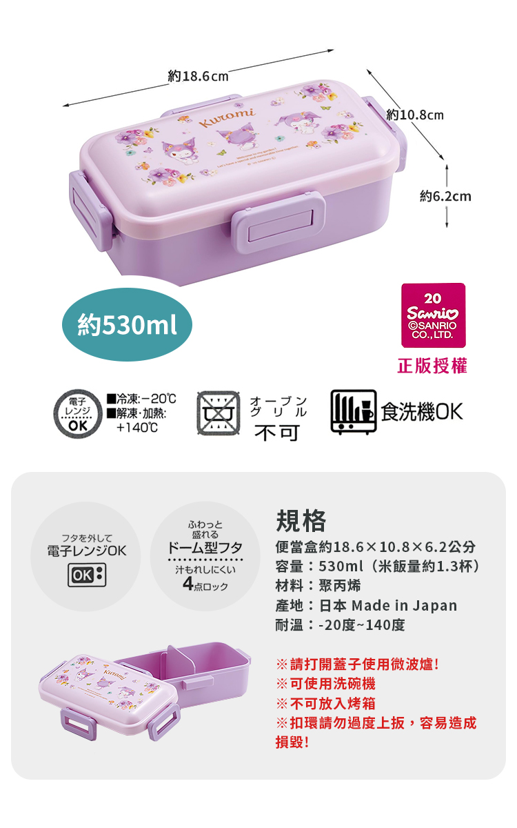 【百科良品】日本製 三麗鷗 酷洛米 花朵水彩風 便當盒 保鮮餐盒 530ML(日本境內版)