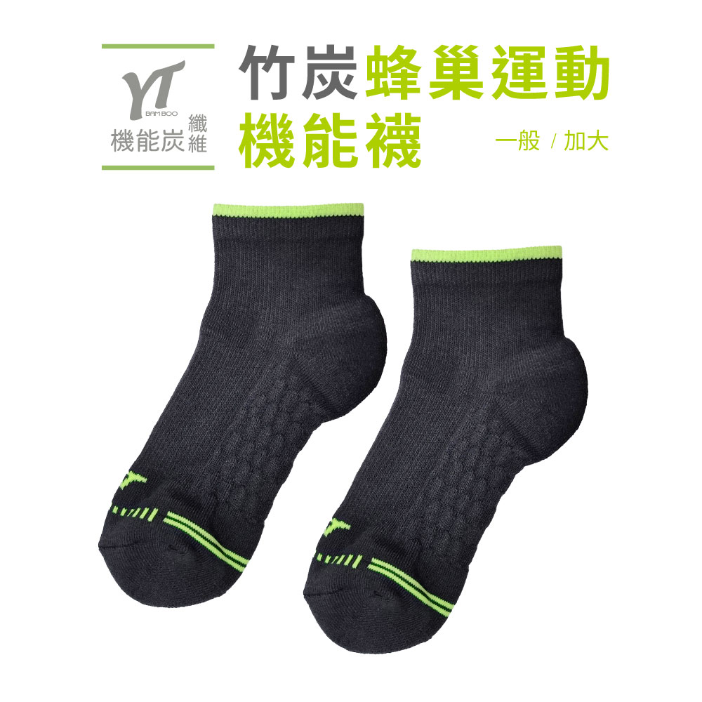 【皇家竹炭】YT 竹炭蜂巢運動機能襪/亮綠 (一般款)