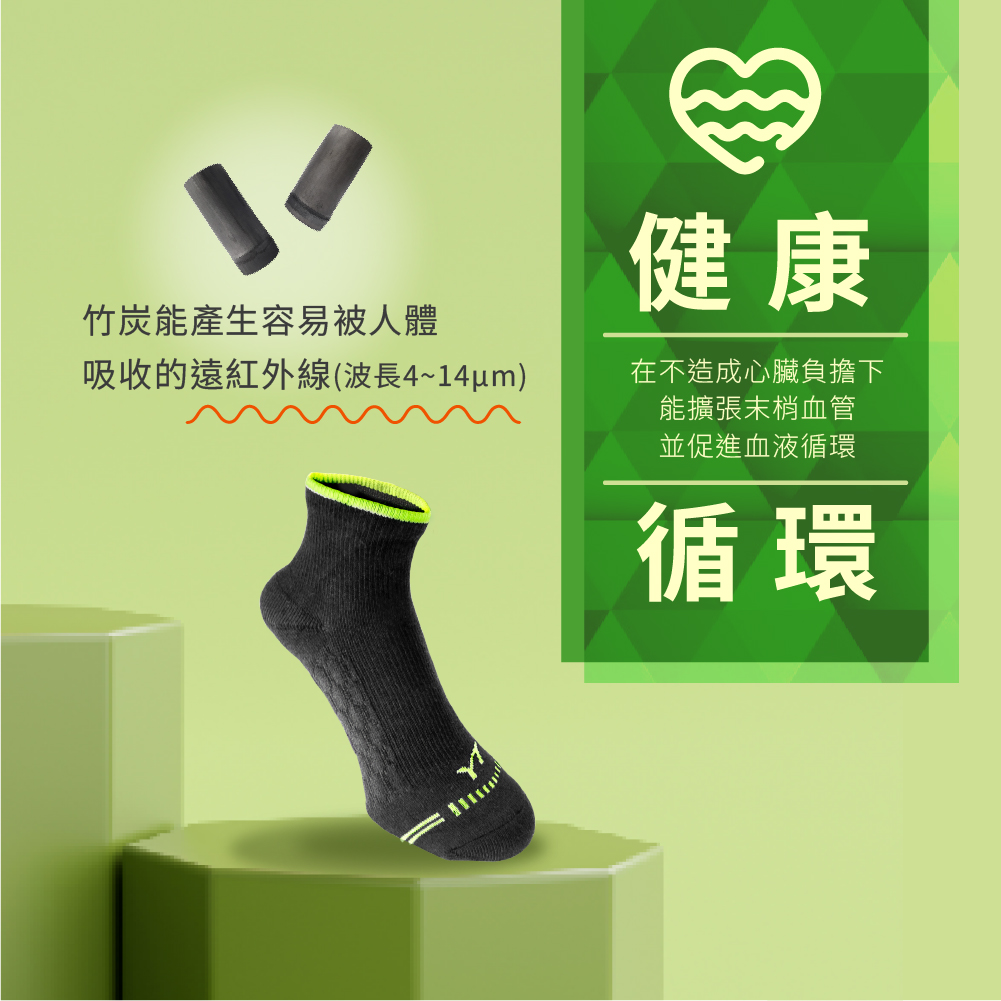 【皇家竹炭】YT 竹炭蜂巢運動機能襪/亮綠 (加大款)