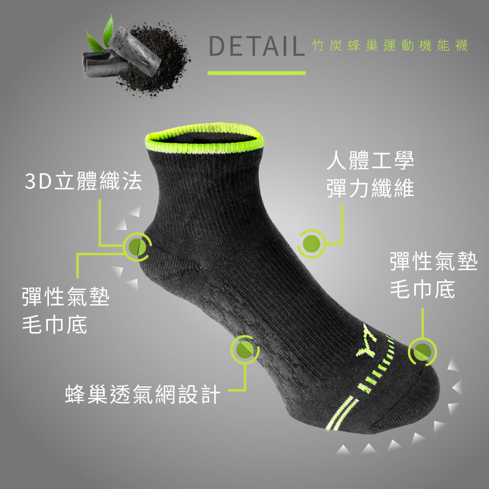 品名:竹炭蜂巢運動機能襪