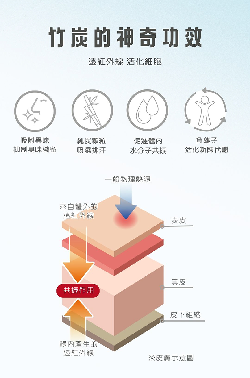 ●100% CAS優良竹炭顆粒注入,竹炭功效更顯著