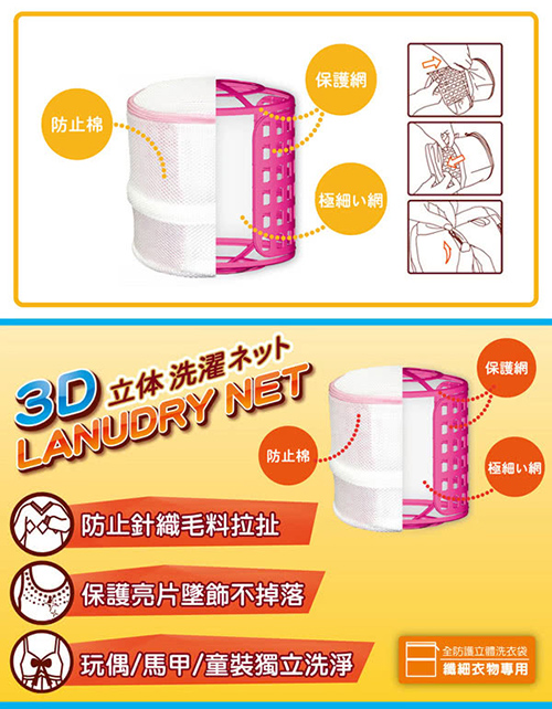 ■ 若洗滌材質為蕾絲、有小配飾、或珍貴內衣,建議改用 可而喜 3D 立體魔衣槽(大/中)較佳。