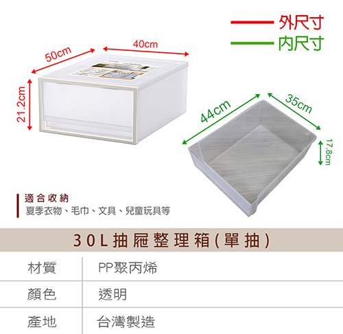 ■30L容量單抽設計,可收納衣物或小孩玩具!