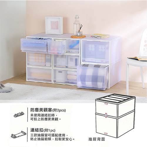 ■三款尺寸面寬深度相同,可自由組合整齊收納!