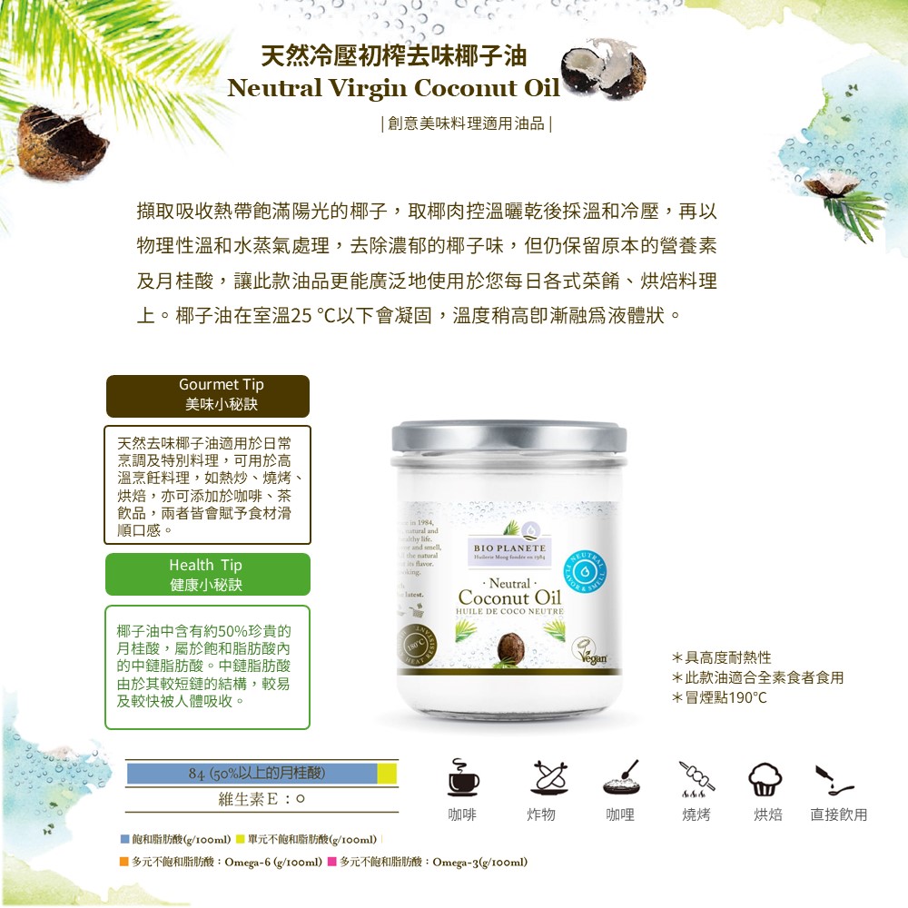 天然冷壓初榨去味椰子油