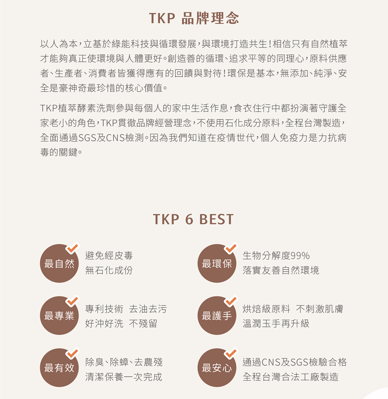 【使用方式】1.將粉:水約1:150(粉一瓶蓋+水5000cc)將酵素與清水混合加入拖地的容器之中。40度溫水效果最好。2.使用拖把配合清潔地面3.可直接加入掃地機器人水箱中,掃地機器人拖地使用比例為粉 1/5瓶蓋+500cc水商品規格品名:TKP速酵清植萃酵素 地板洗護粉成分:大米酵素、礦物元素、植物萃取精華保存期限:3年製造日期:如包裝打印容量:500公克製造工廠:同豪科技股份有限公司生產地:台灣保存方法:請勿存放在陽光直射及潮濕之處,並應注意置於嬰幼兒無法取得的地方。※環保酵素洗劑沒有使用抗凝結劑,與空氣接觸袋內可能會有些許結塊,輕按即可散開。※因超商取貨有5KG的重量限制.超過需分開下單或改選宅配,謝謝。