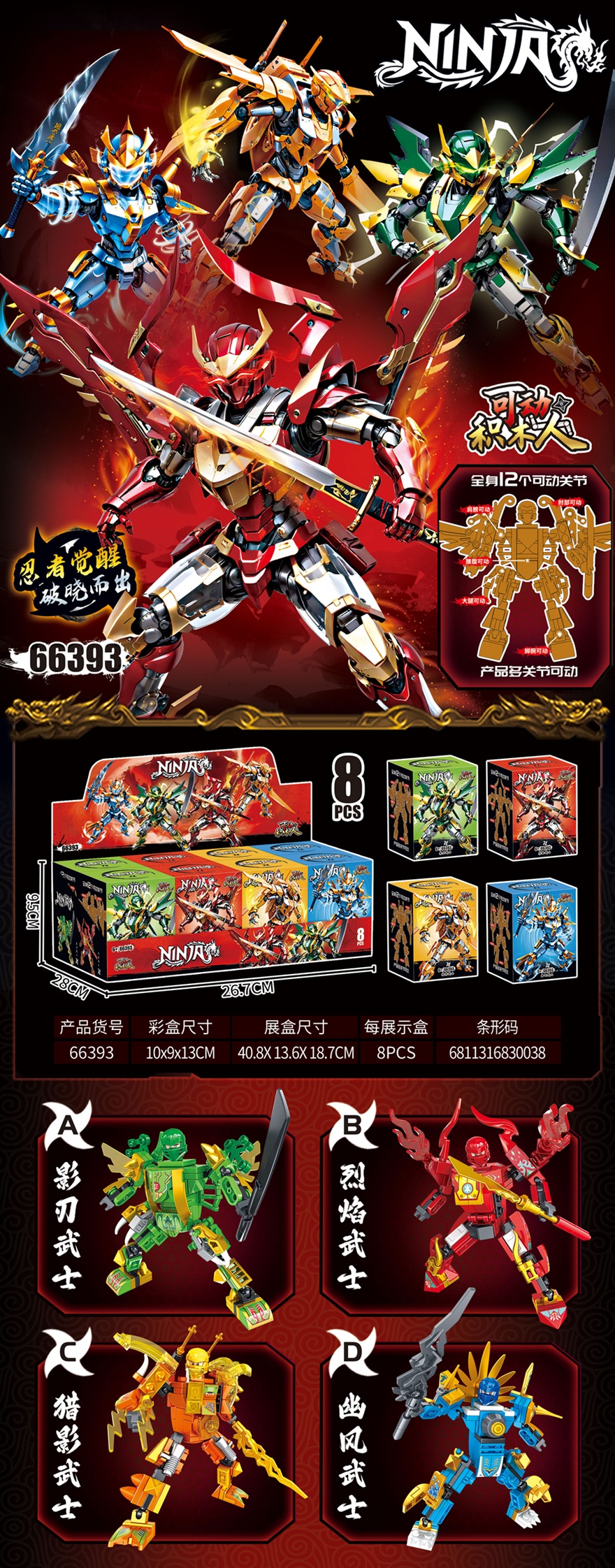 [積木共和國] OT66393 關節可動忍者 一套四款販售(益智拼裝積木)