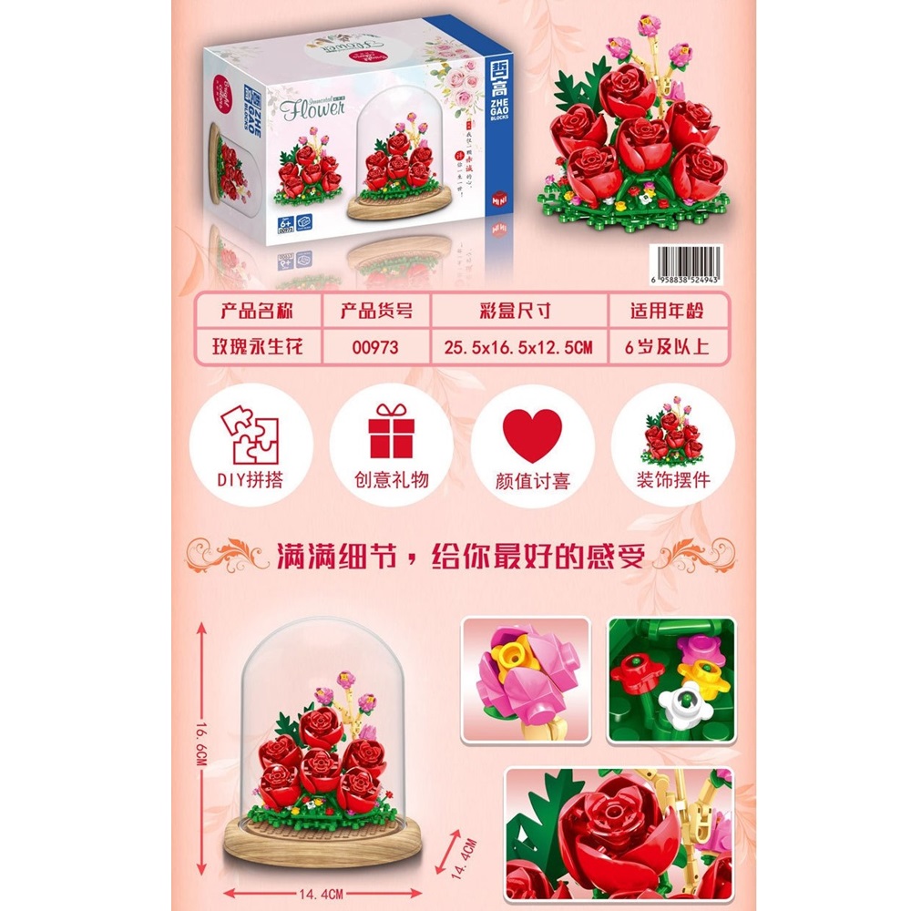 [積木共和國] 【ZHEGAO哲高】00973 玫瑰/永生花系列(益智拼裝積木)