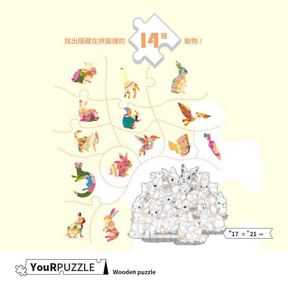 [積木共和國] 【YouRPUZZLE】台灣現貨兔子聚會拼圖(檢驗合格木質動物拼圖)