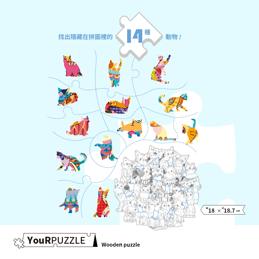 [積木共和國] 【YouRPUZZLE】台灣現貨貓咪聚會拼圖(檢驗合格木質動物拼圖)