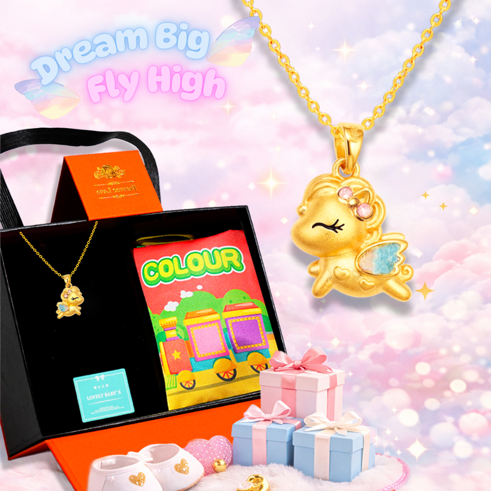 【童樂繪金飾】幸運飛馬 守護項鍊 彌月黃金禮盒 約重0.39錢±0.03 附贈馬年平安符 (彌月金飾 彌月禮)