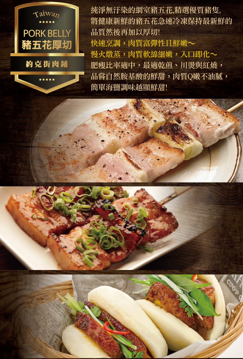 約克街肉鋪 台灣國產嚴選豬五花厚切2片(100g±10%/片/2片1包)_任選