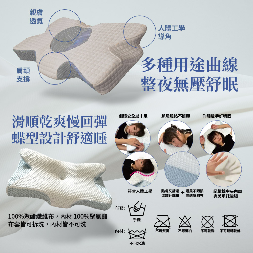 蝴蝶形設計自然支撐頭部、頸部和肩部