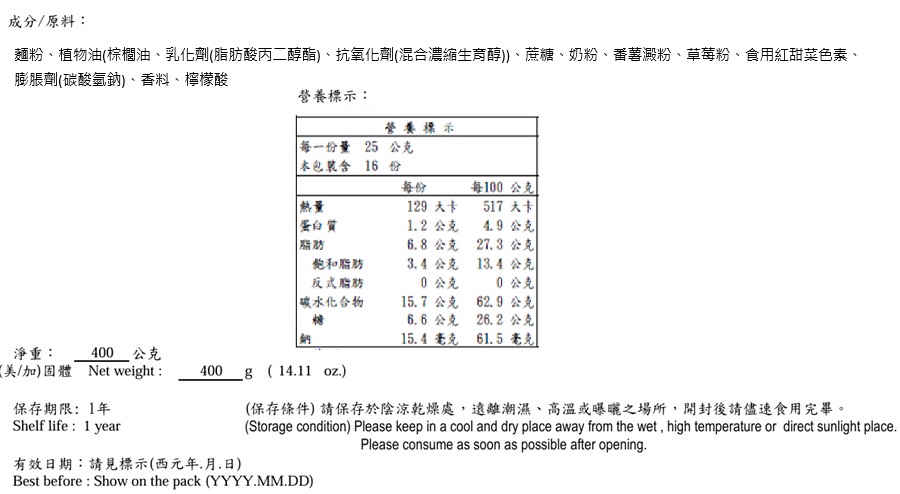 ◎品牌:義美 ◎規格: 400g克 x 1 x 1Bag袋