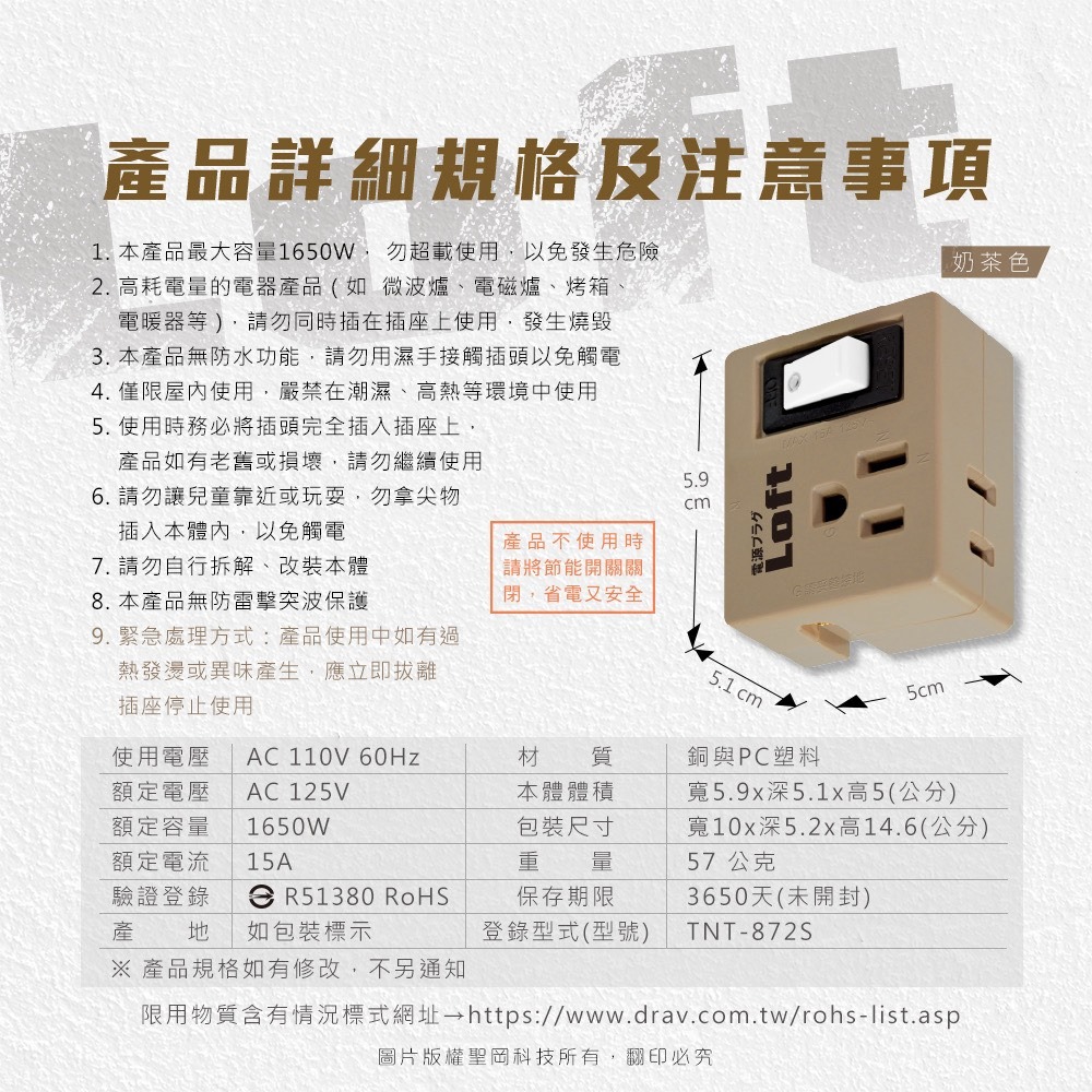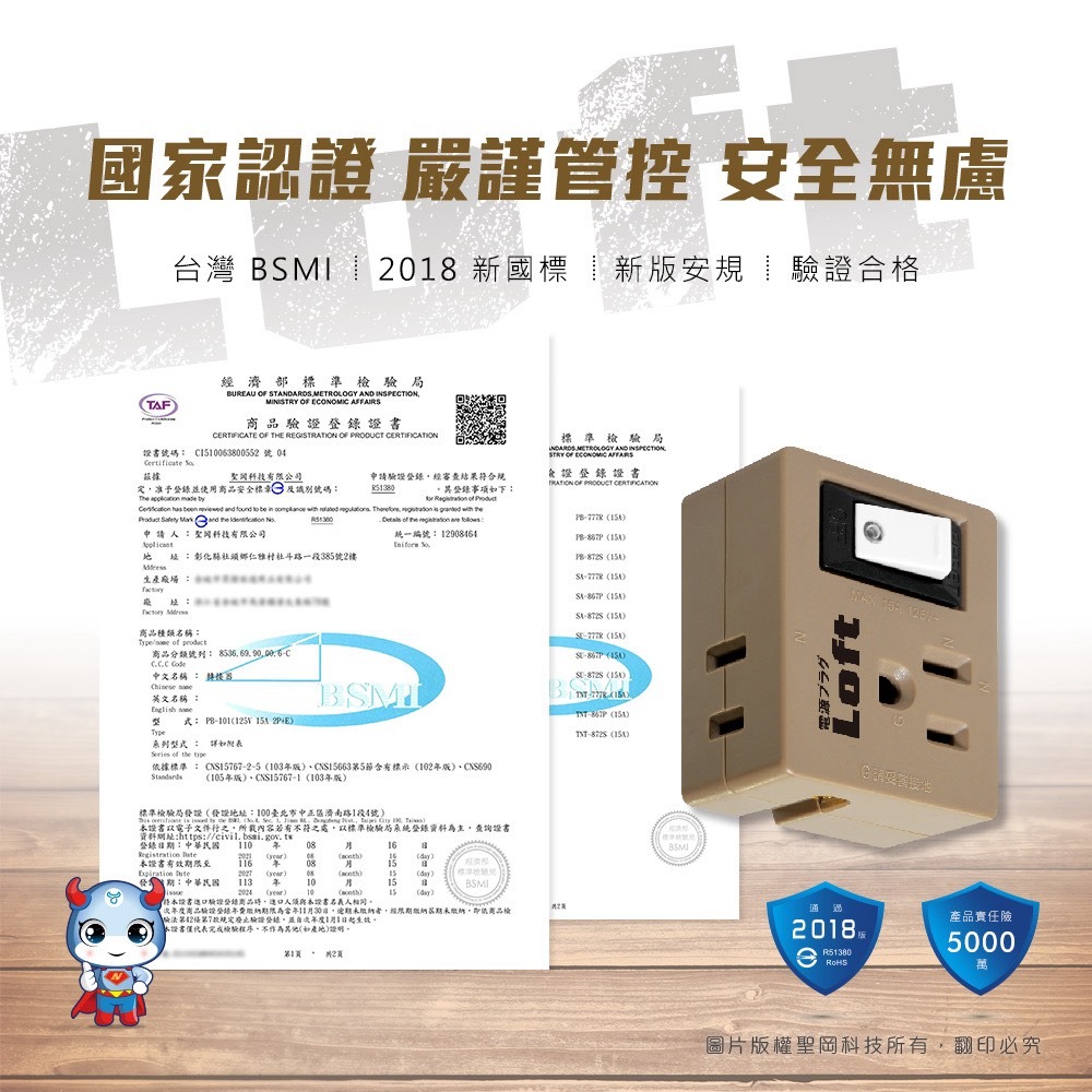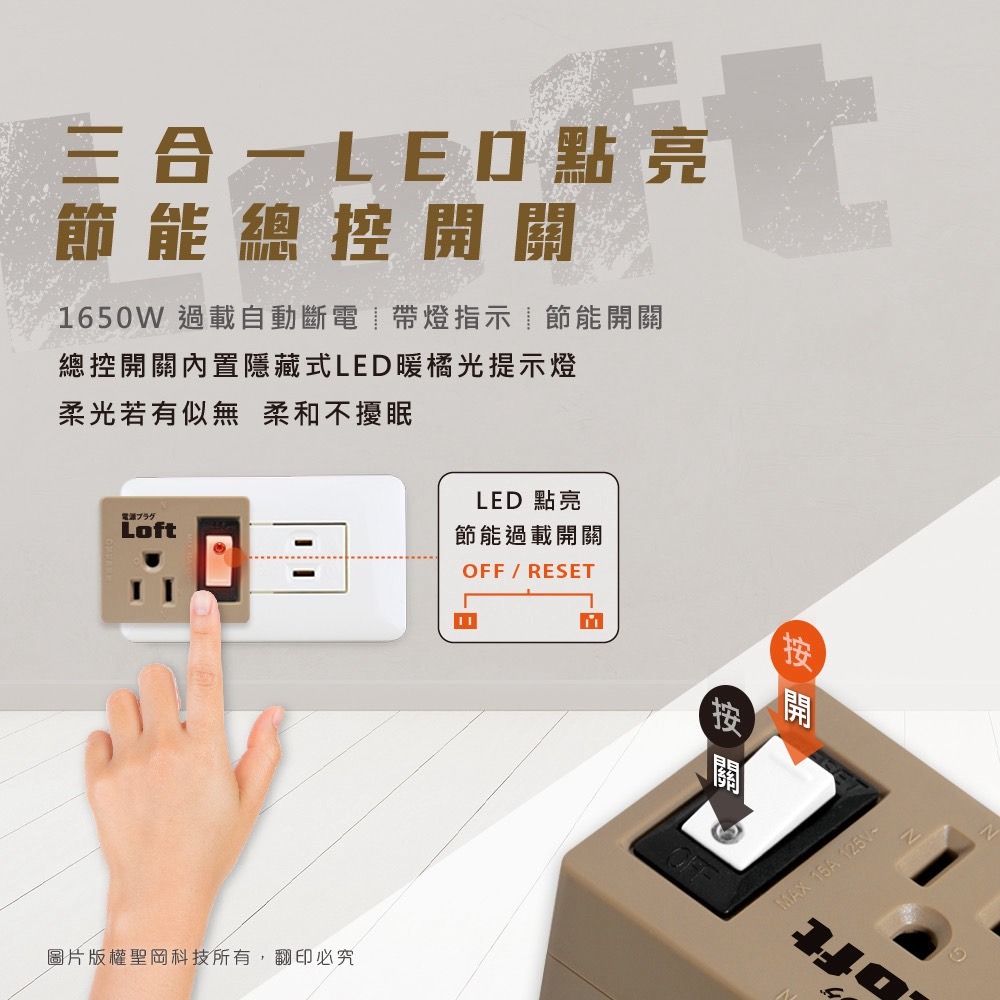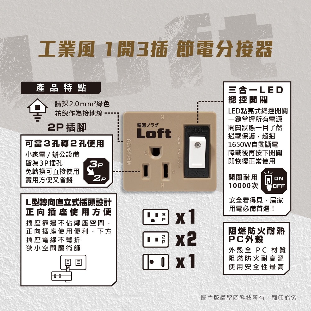 聖岡科技 工業風1開3插節電分接器 BSMI認證 LL-872S