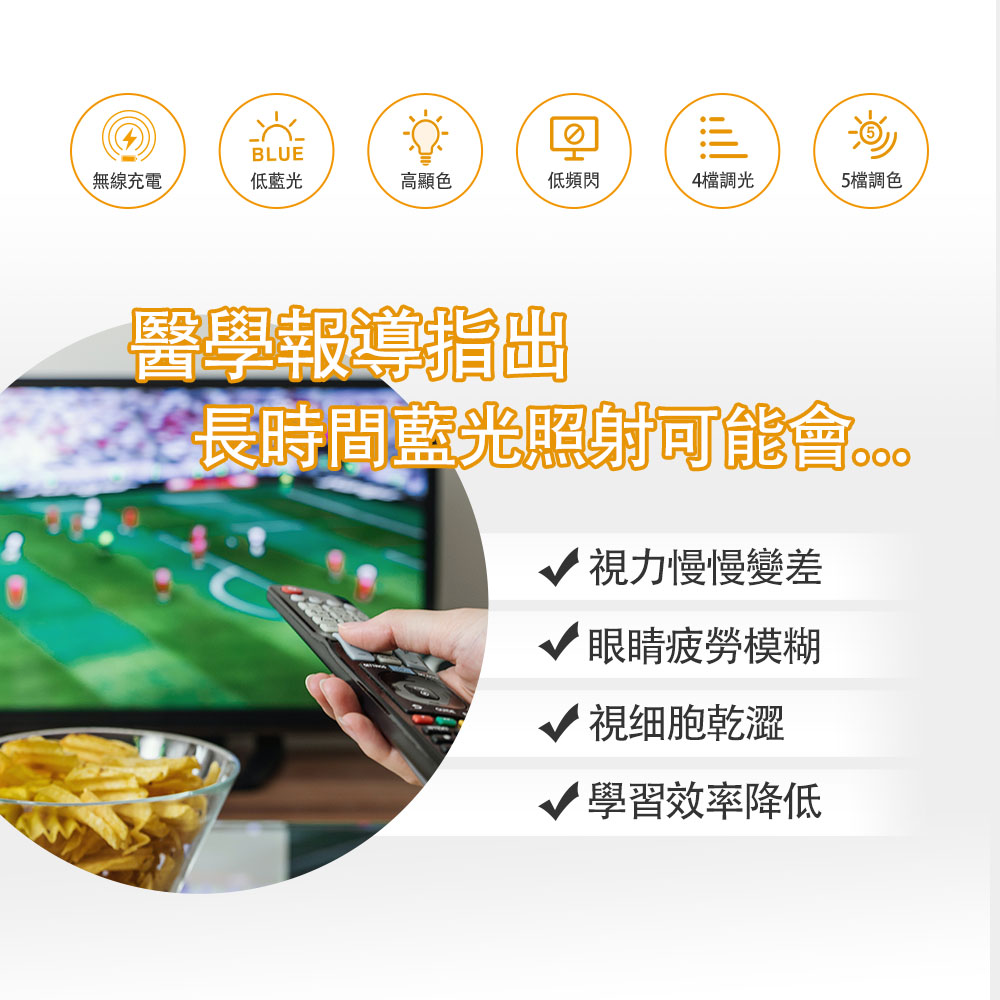 巴斯夫專利臻光彩技術,能將短波高能有傷害眼睛風險的藍光,轉換為溫暖療癒的黃綠光及紅光,因此,相較於市面上銷售的刺眼白光檯燈或其他護眼檯燈,可以有效減少50~75%藍光,降低藍光對眼睛的危害。