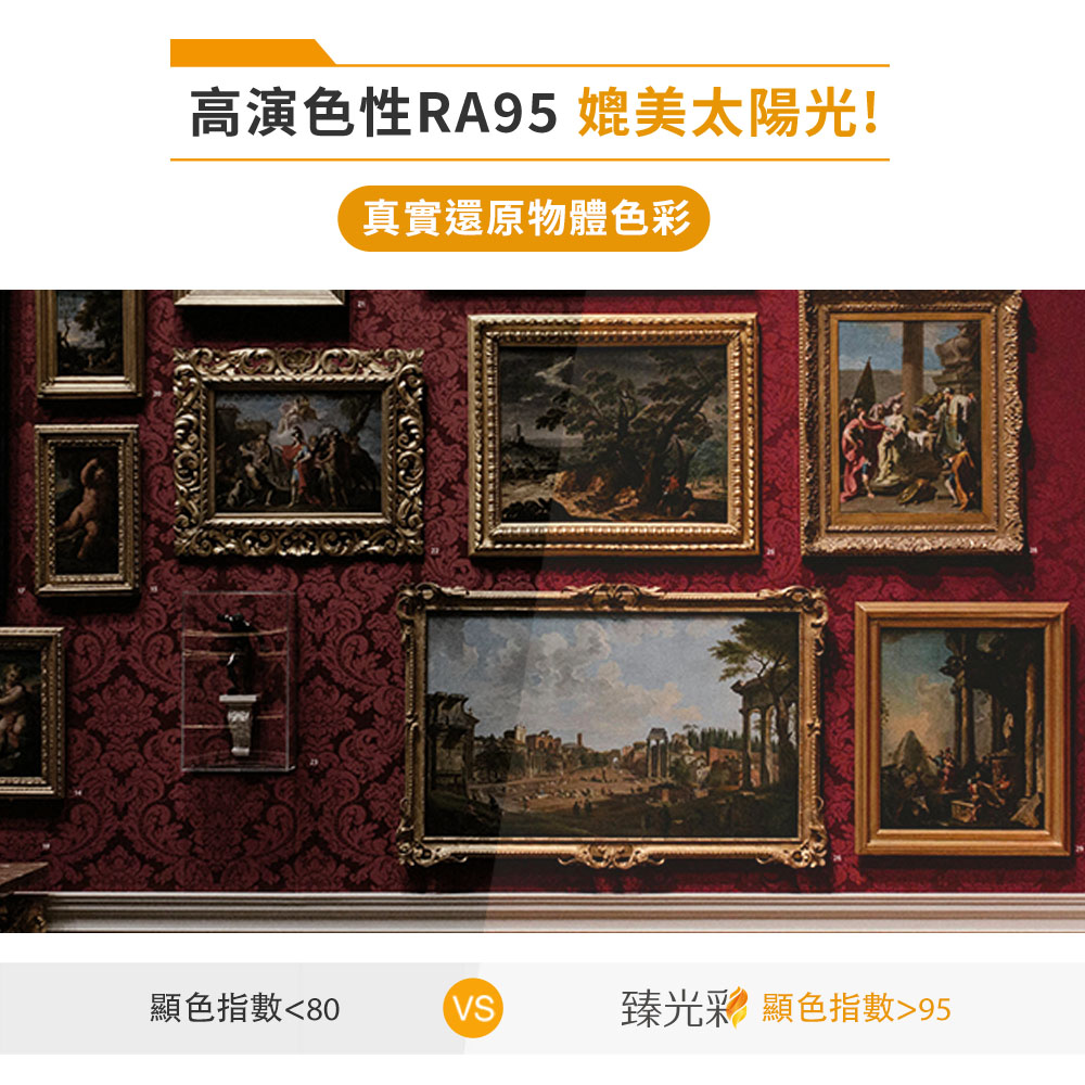 演色性高達 Ra95(大自然陽光演色性是 Ra100,一般市售光源僅 Ra70-80),讓家人隨時享受如陽光般舒適自然的光源,室內拍照不用 PS 蘋果光,化妝直播直接上手