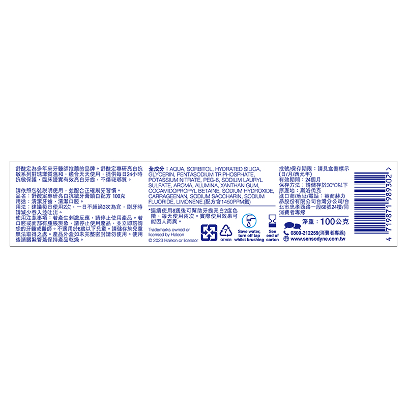 ◎品牌:舒酸定 ◎規格: 100g克 x 1 x 1PC支