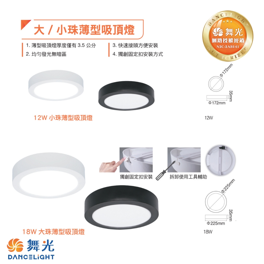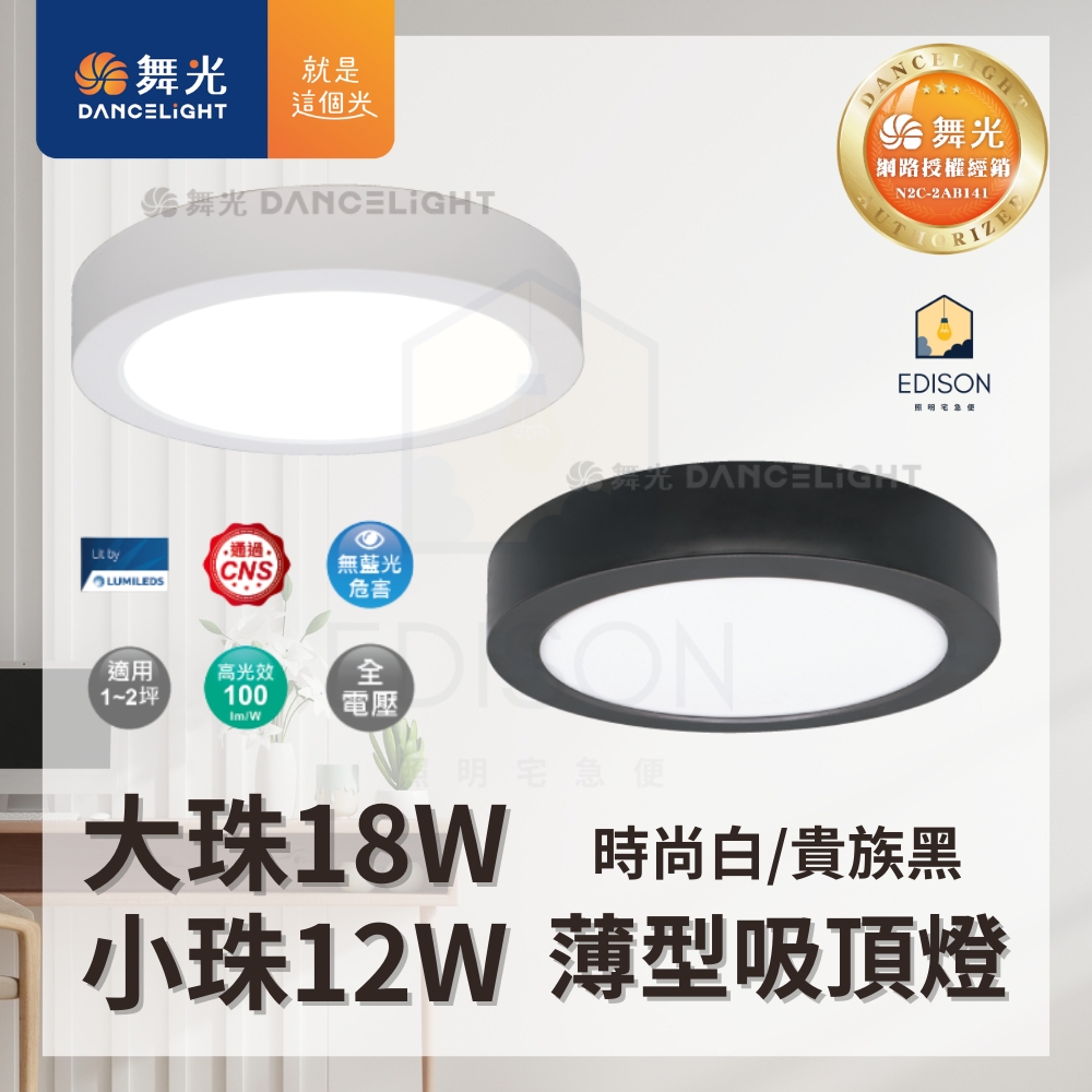 【 舞光 】LED 大珠 小珠 薄型吸頂燈 12W 18W 時尚白 貴族黑 吸頂燈