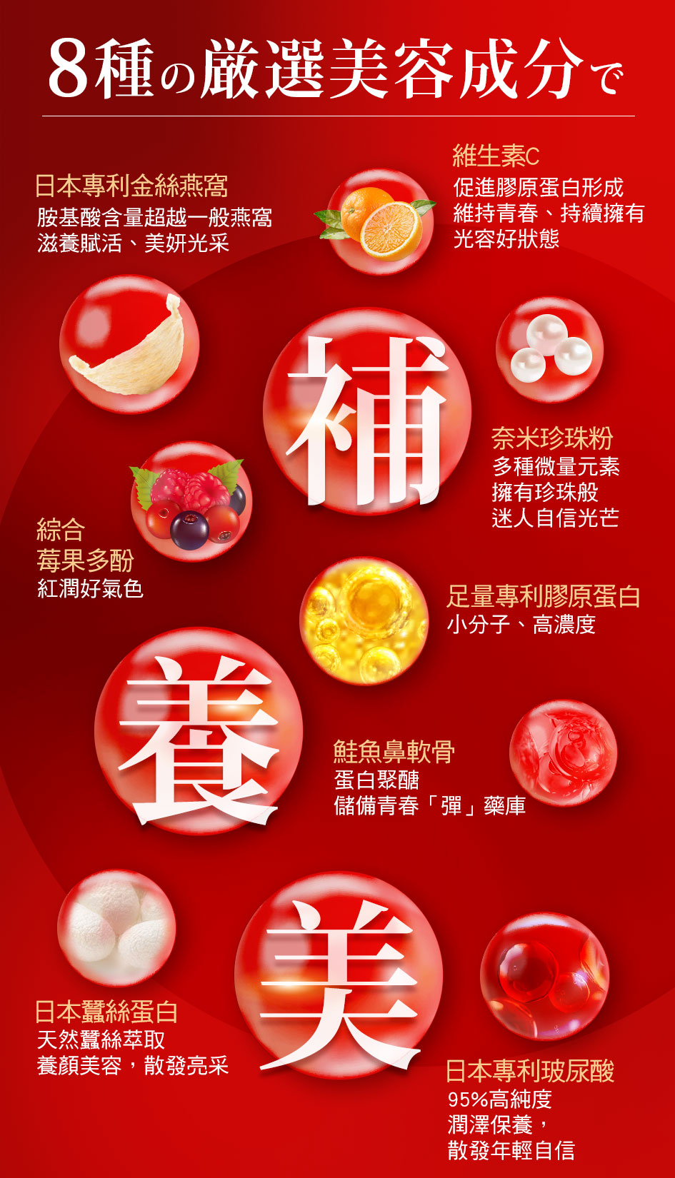 ★2023頂標含量添加-燕窩酸121.18mg ★日本專利金絲燕窩:外養顏,內滋補 ★日本專利頂級玻尿酸:潤澤保養,散發年輕自信