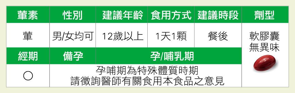金盞花萃取【葉黃素20%、麥芽糊精、美國專利FloraGLO®金盞花葉黃素〔紅花籽油、葉黃素、生育醇(維生素E)、(抗氧化劑)〕、玉米黃素20%】、魚油、專利雨生紅藻萃取(含蝦紅素)、亞麻仁籽油、脂肪酸甘油酯、山桑子萃取、大豆卵磷脂、專利綠薄荷萃取物、枸杞萃取物、維生素E、維生素B6、維生素B12、維生素A