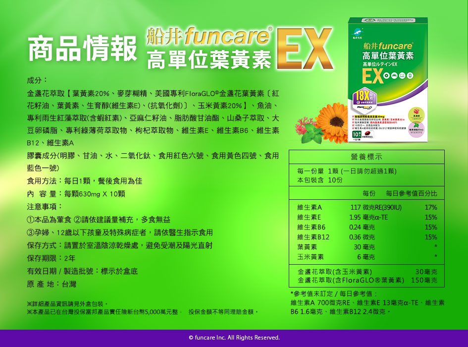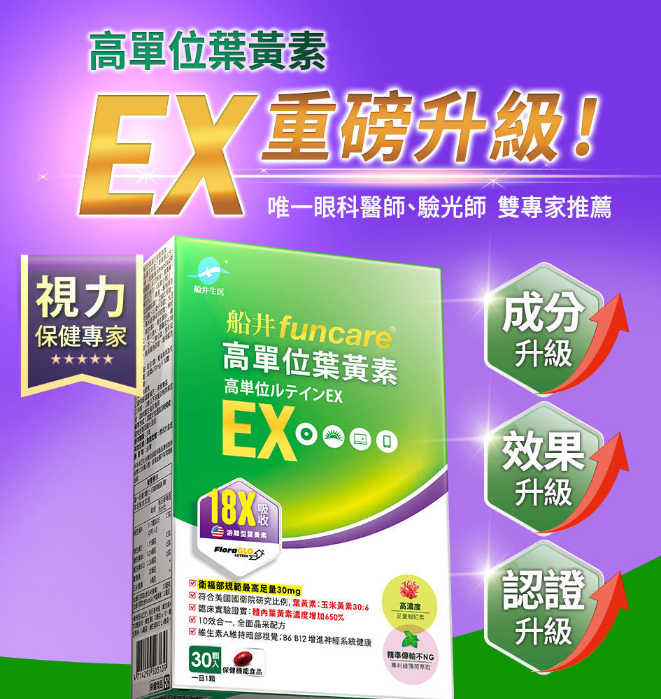 【船井】高單位葉黃素EX 10顆/盒(葉黃素最高劑量30mg/特別添加蝦紅素)