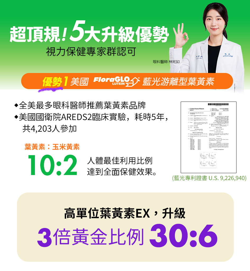 ★高度使用3C、上班族、熟齡族、視力保健必備!. ★成分升級,藍光專利FloraGLO游離型葉黃素+專利玉米黃素 ★特別添加,德國AstnZine專利蝦紅素、美國專利綠薄荷、歐洲藥典級山桑子+維生素A、魚油+維生素E、漢方枸杞
