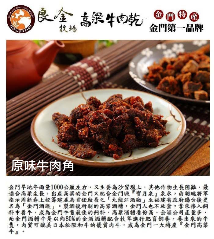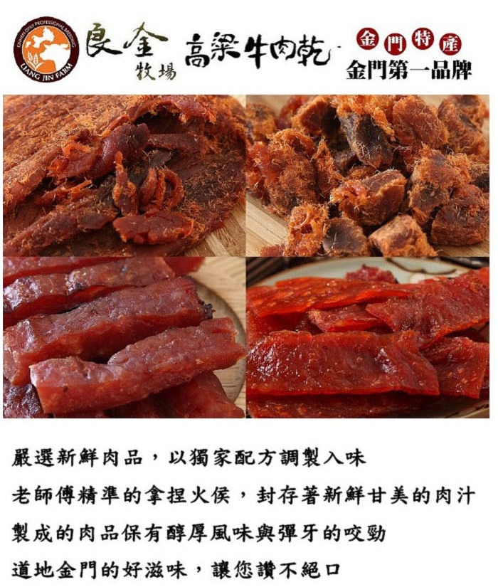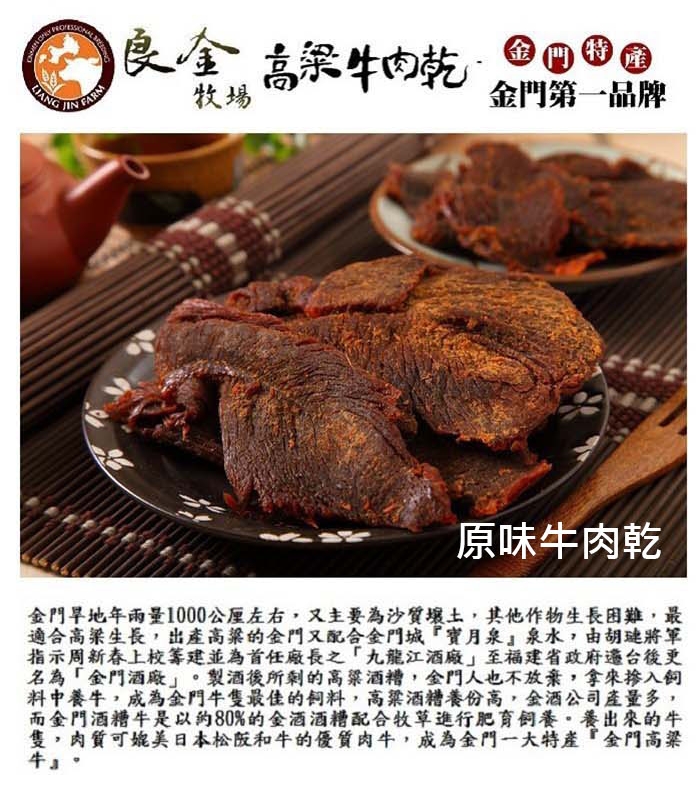 高粱牛肉乾(原味):精選牛肉、糖、醬油、鹽、高梁酒、甘草