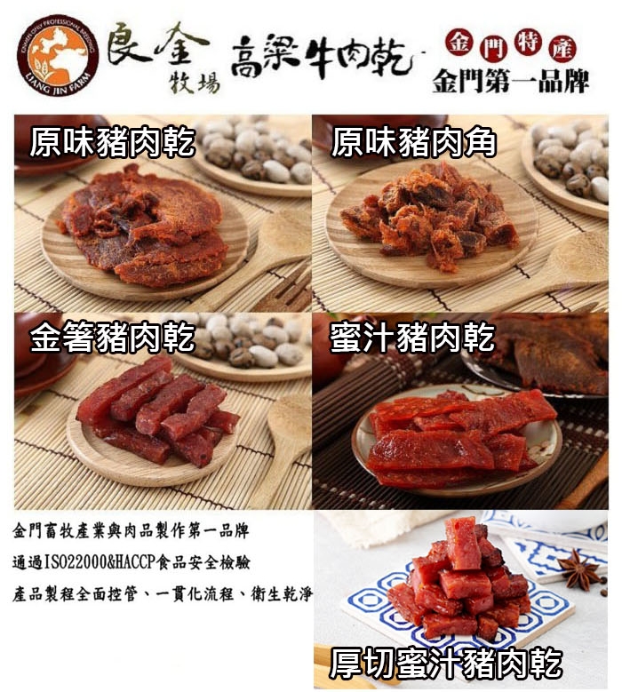 高粱牛肉角(黑胡椒):精選牛肉、糖、醬油、黑胡椒粒、鹽、味素、高梁酒、