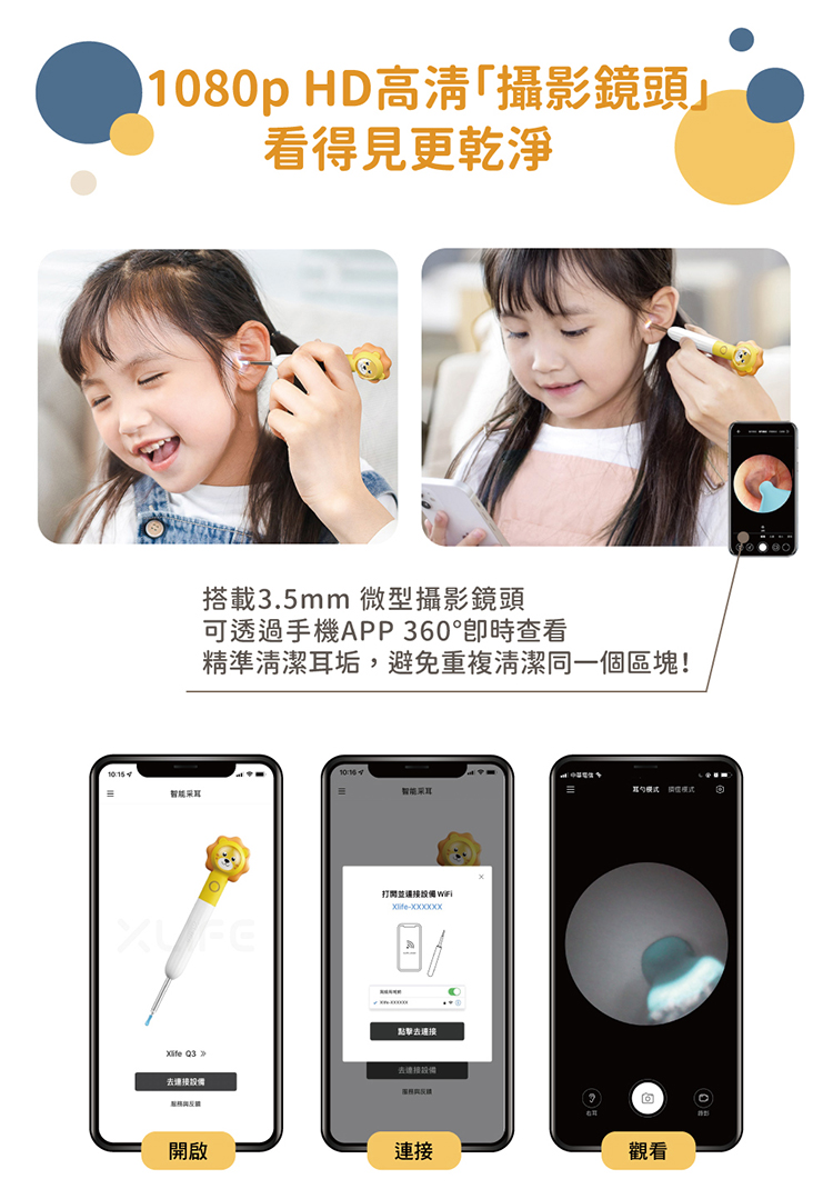 芽比兔-XLife 兒童智能監控挖耳棒擁有3.5mm 微型攝影鏡頭 + 1080p 高解析度,