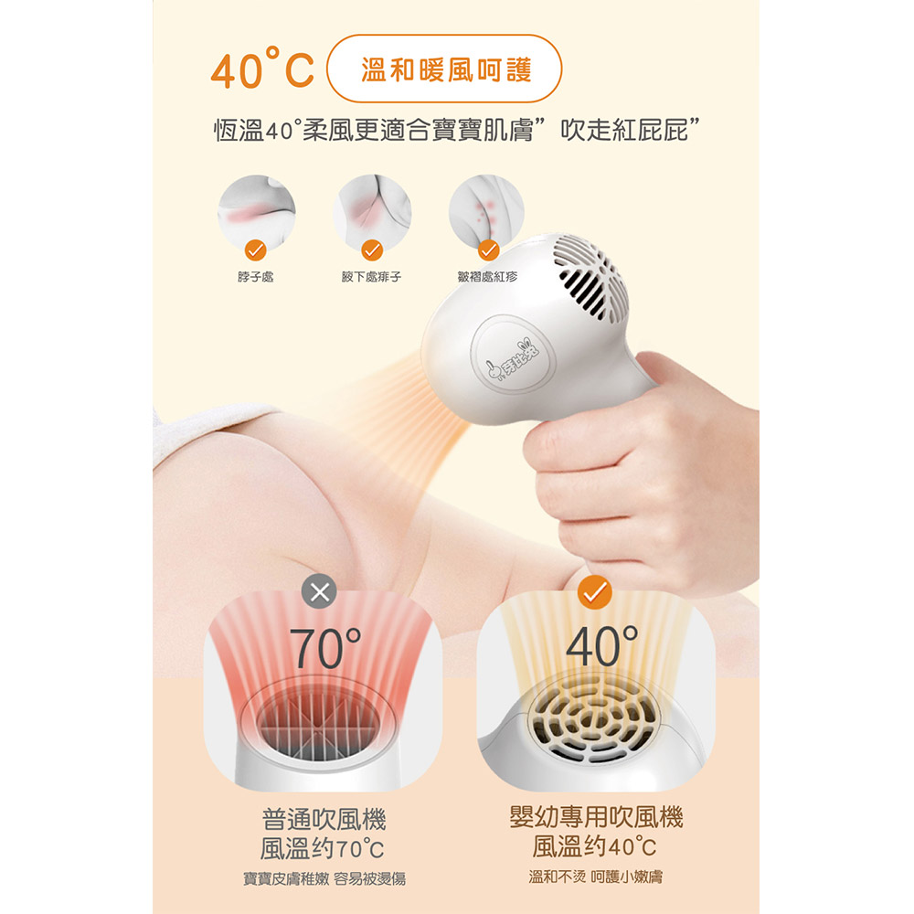 粉嫩嫩的baby皮膚承受不了一般吹風機的高溫強風,輕則發紅發癢,重則燙傷過敏。