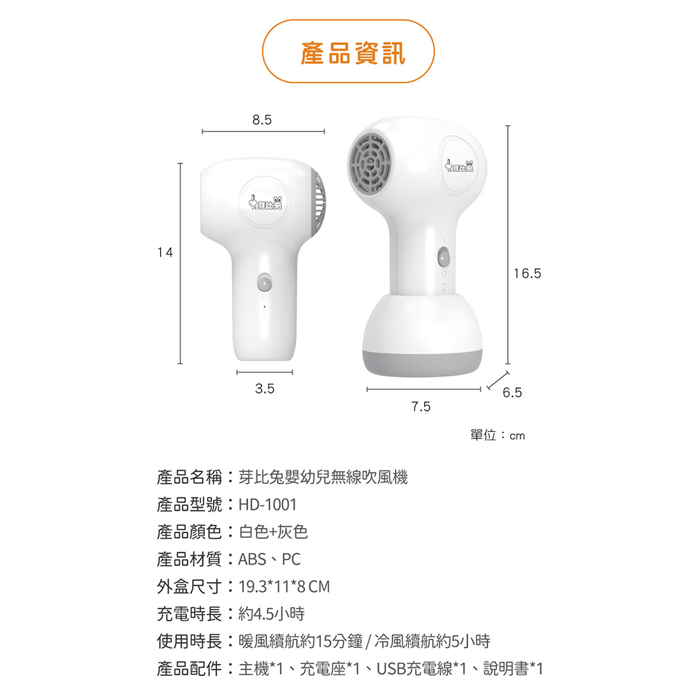 商品名稱:芽比兔嬰幼兒無線吹風機