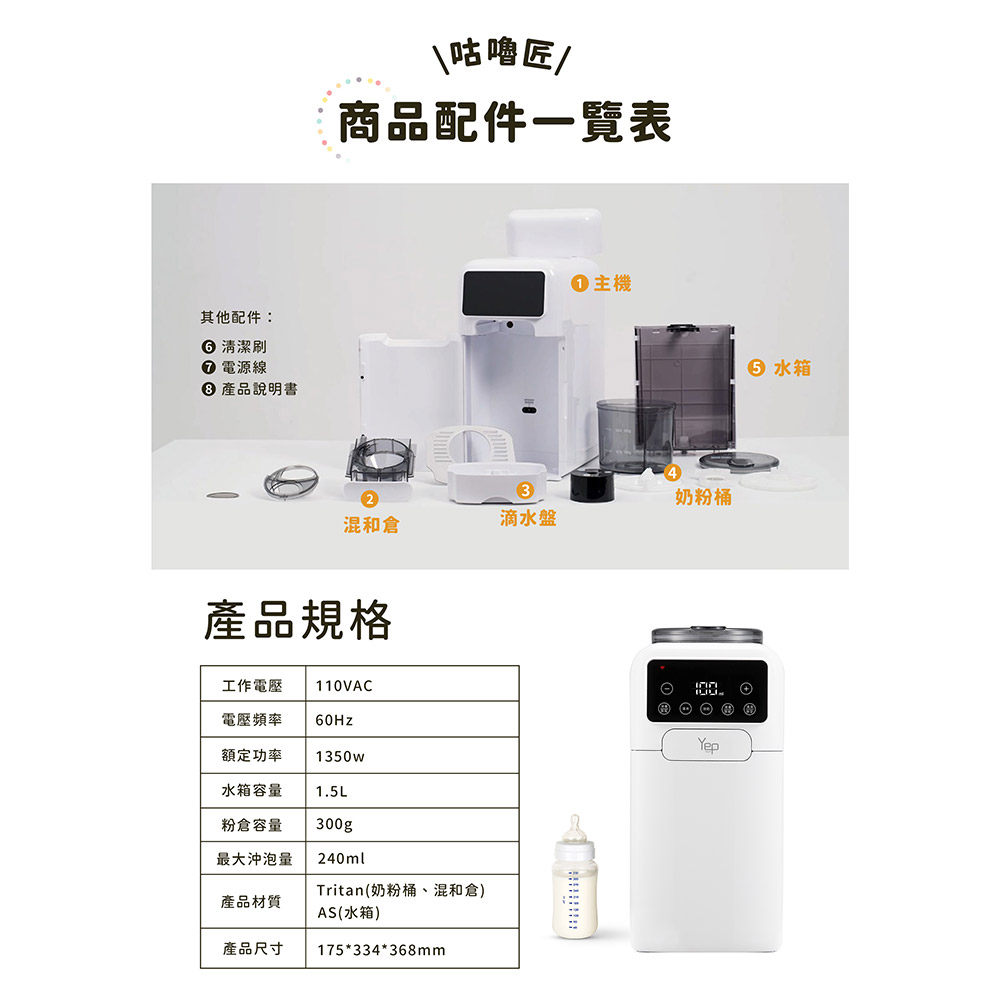 商品材質:Tritan(奶粉桶、混和倉)、AS(水箱)