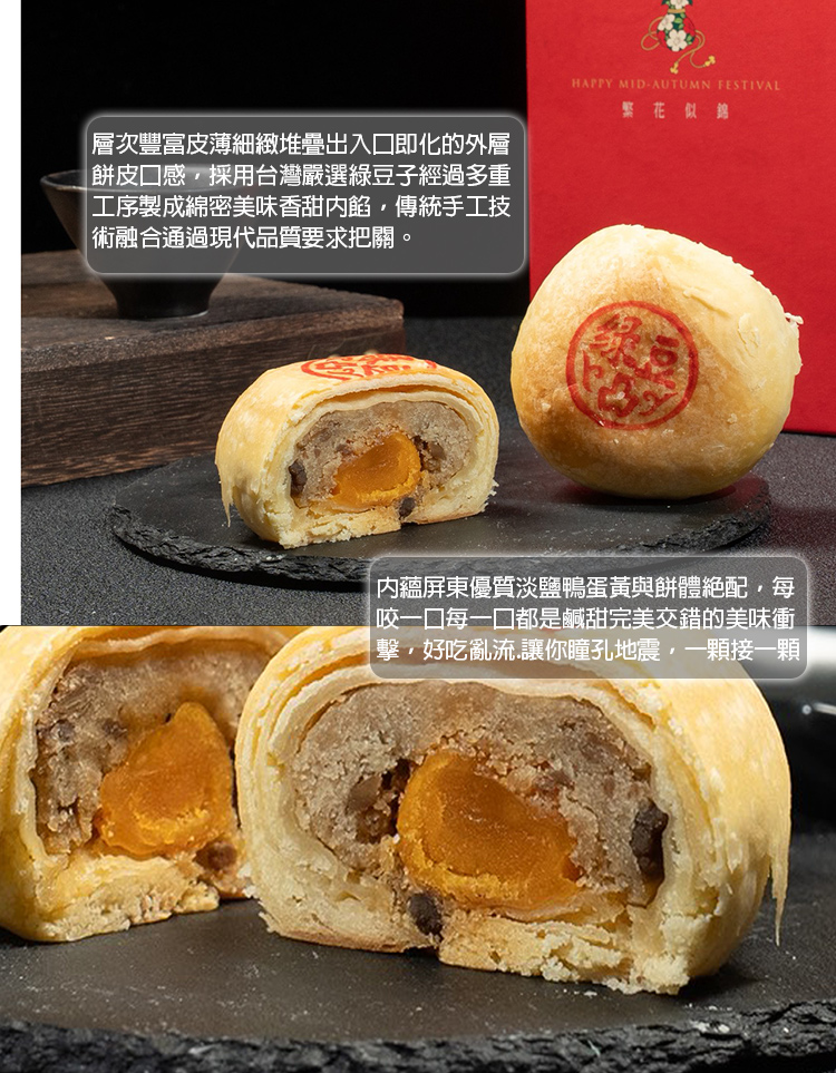 傳統老師傅手藝薄酥餅皮 搭配超綿密綠豆椪 使用法國頂級食材白玉蝸牛 獨具特色創新烘焙 鹹甜交織出美味口感與香醇香氣 送禮自用兩相宜【芽米蝸牛】法式白蝸牛創意烘焙玉螺綠豆椪6入禮盒x3盒組 |來自山海之間的職人之作| 感謝您對芽米蝸牛的支持,願這份來自「玉螺」的綠豆碰,為您帶來一口純粹、一段回甘。我們精選綿密細緻的綠豆沙,融合層層酥香的餅皮,打造出層次分明、入口即化的口感。每一口,都是對傳統工法的致敬與對品質的堅持。白玉蝸牛,因其肉質潔白如玉而得名,是法式料理中的高檔食材。其肉質細嫩無腥味,富含高蛋白、低脂肪,熱量僅為牛肉的八分之一,且幾乎不含膽固醇,適合追求健康飲食的您 。 【商品特色】 ◆台灣最喜愛的糕餅綠豆椪,特請傳統老師傅手藝 ◆專業工法製成薄酥餅皮,每一口都是入口即化 ◆搭配台灣特選綠豆多重磨製成超綿密綠豆椪 ◆創意使用法國頂級食材白玉蝸牛 ◆獨家設計獨具特色創新烘焙,獲得各界一致好評推薦 ◆鹹甜交織出美味口感與香醇香氣,送禮自用兩相宜 保存方式| 冷凍保存,請避免高溫與陽光直射,最佳賞味期請見包裝標示。 享用建議| 商品為冷凍宅配,收到後完全退冰即可食用。 微加熱方式:需完全退冰,烤箱回烤3-5分鐘,外酥內鬆,風味更佳。 【商品規格】 品名:【芽米蝸牛】法式白蝸牛創意烘焙玉螺綠豆椪6入禮盒x3盒組 成份:麵粉、奶油、無水奶油、酥油、綠豆沙、豬肉、白玉螺肉、蛋黃 保存方式:冷凍30天 重量:750g±10%(6入)x3盒 產地:台灣 豬肉廠商名稱:鼎圓開發有限公司 廠商地址:新北市中和區立德街9號4樓 製造/進口商名稱:台灣鑫鮮生技有限公司 製造/進口商電話號碼:(07)373-0007 製造/進口商地址:高雄市仁武區澄觀路1633號 商品保存期限:冷藏7-10天 投保產品責任險字號:080403PDT00143 食品業者登錄字號:E-127218298-00000-1 過敏源資訊:本商品含有雞蛋、牛奶、麵粉(麩質穀物製品)成份,對其過敏患者不適合食用 營養標示:每一份含量50公克,本包裝含15份,共750公克 熱量-每份224.7大卡;每100公克 449.4大卡。 蛋白質-每份5.4公克;每100公克 10.8公克 脂肪-每份13公克;每100公克25.9公克 飽和脂肪-2.2公克;每100公克4.5公克 反式脂肪-每份0公克;每100公克0公克 碳水化合物-每份22公克;每100公克43.7公克 糖-每份8.9公克;每100公克17.9公克 鈉-每份59.5毫克;每100公克119毫克