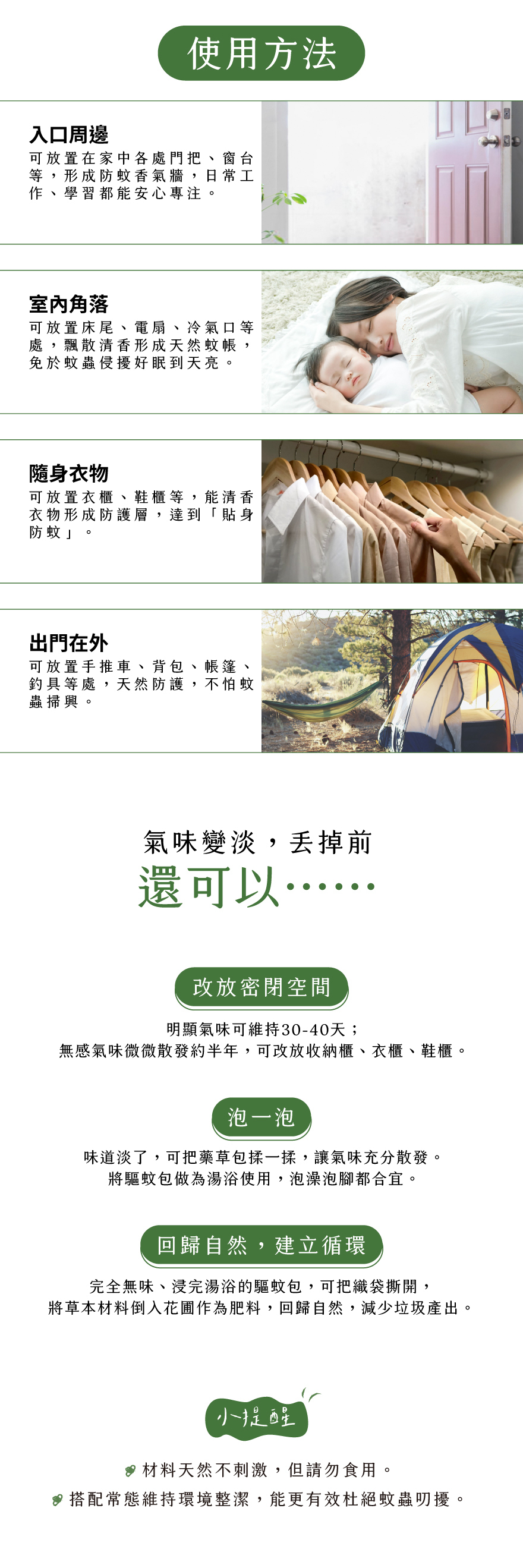 成份:香茅、廣藿香、丁香、薄荷、紫蘇、艾葉。