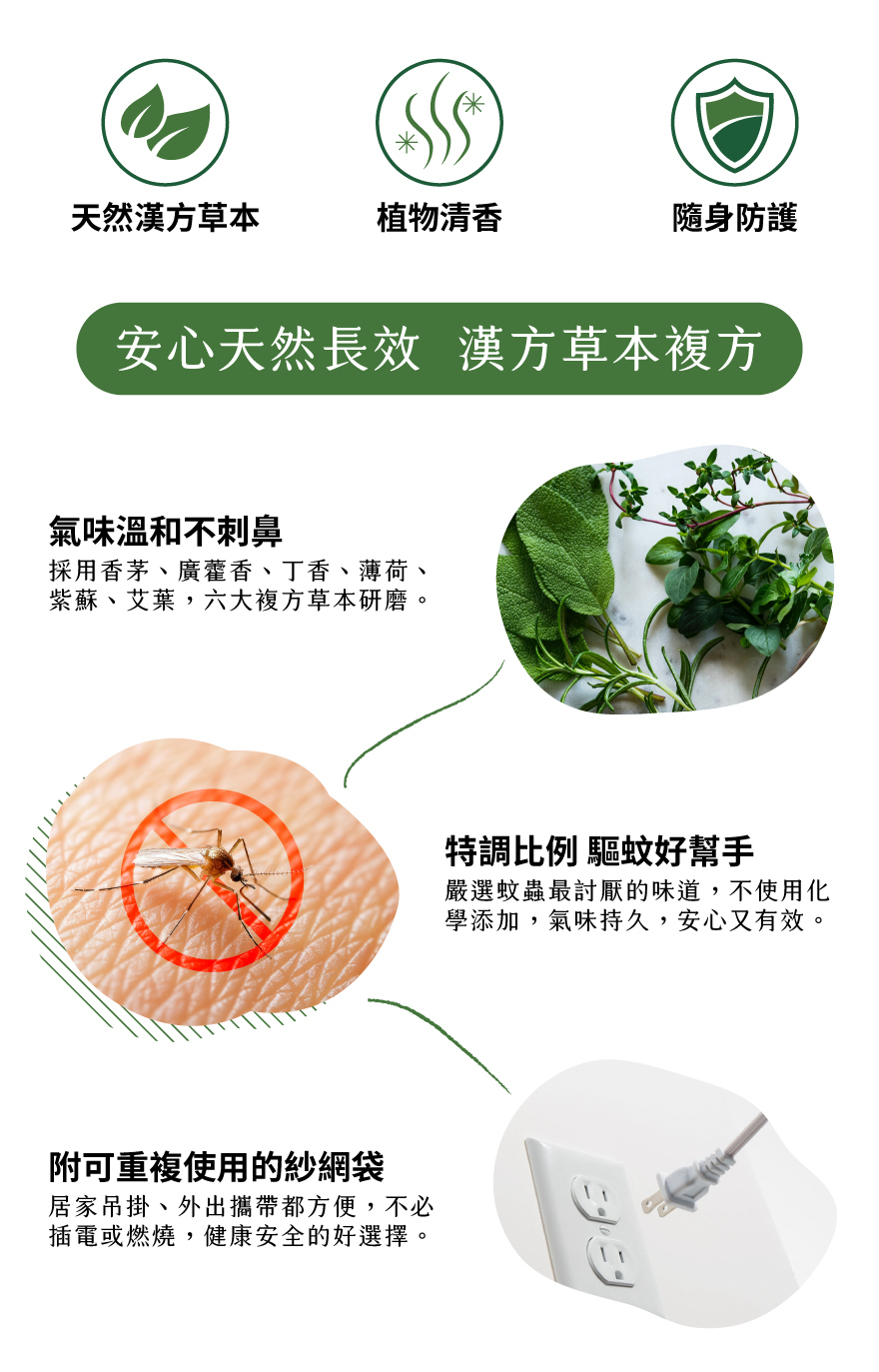 成份:香茅、廣藿香、丁香、薄荷、紫蘇、艾葉。