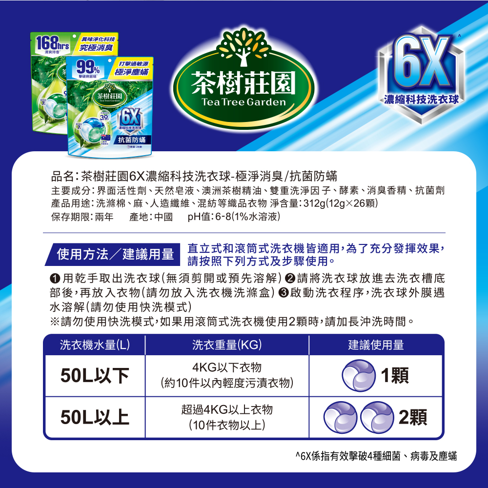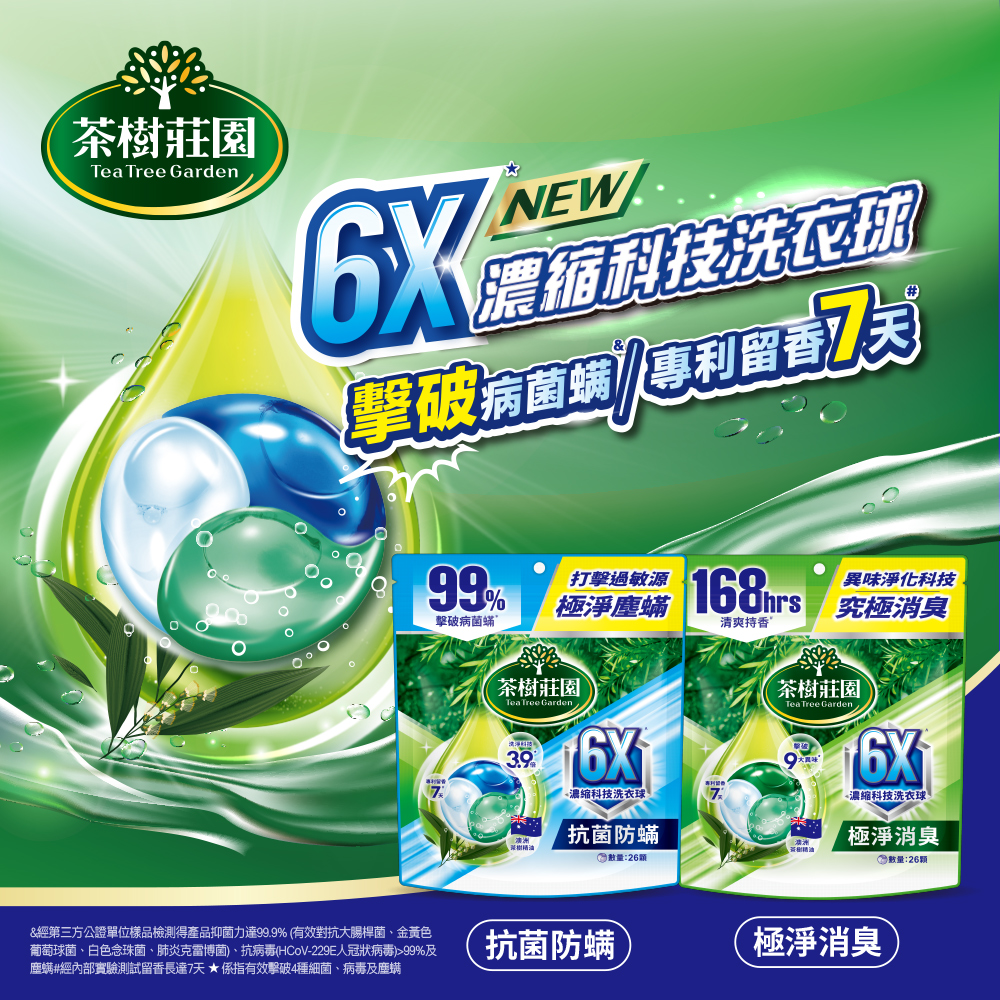 茶樹莊園6X濃縮科技洗衣球抗菌防蟎26顆