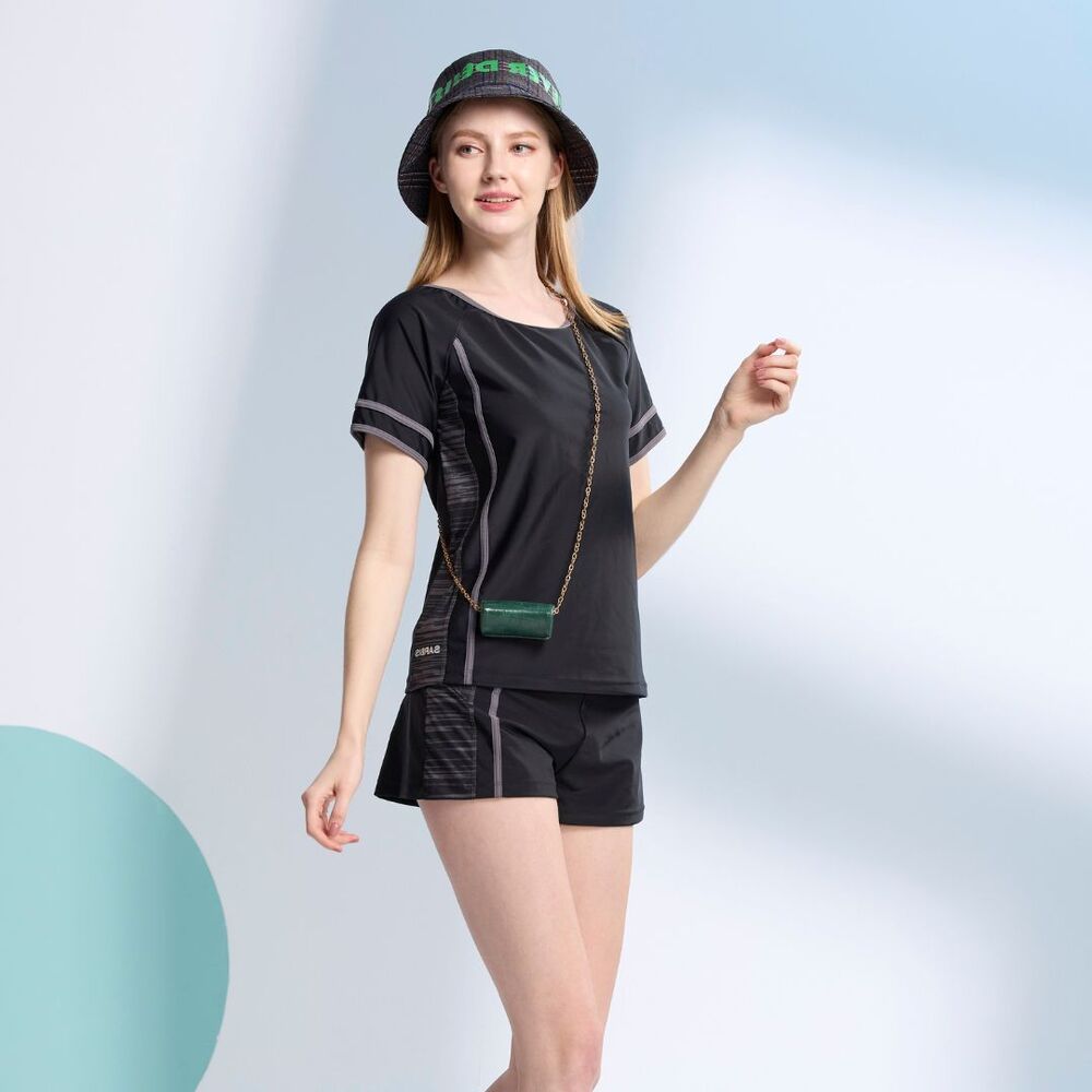 莫妮娜MIT 短袖二件式泳裝 黑色加大尺寸-XL